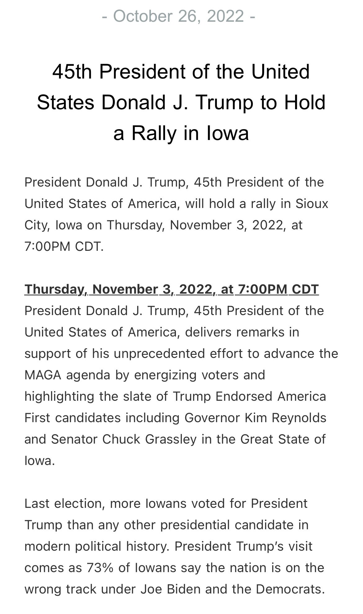 Rally next Thursday! In Iowa. Sioux City. AT AN AIRPORT!