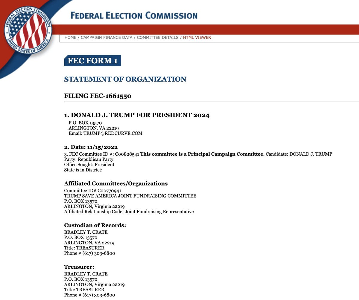 BREAKING: TRUMP PAPERWORK HAS BEEN FILED WITH THE FEC