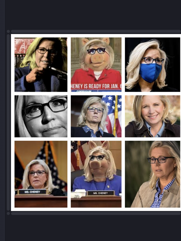 A recent article said according to polls Liz Cheney may be the least popular prominent person in the Republican Party now. So here is a collage I made for everyone. Enjoy! 🤣