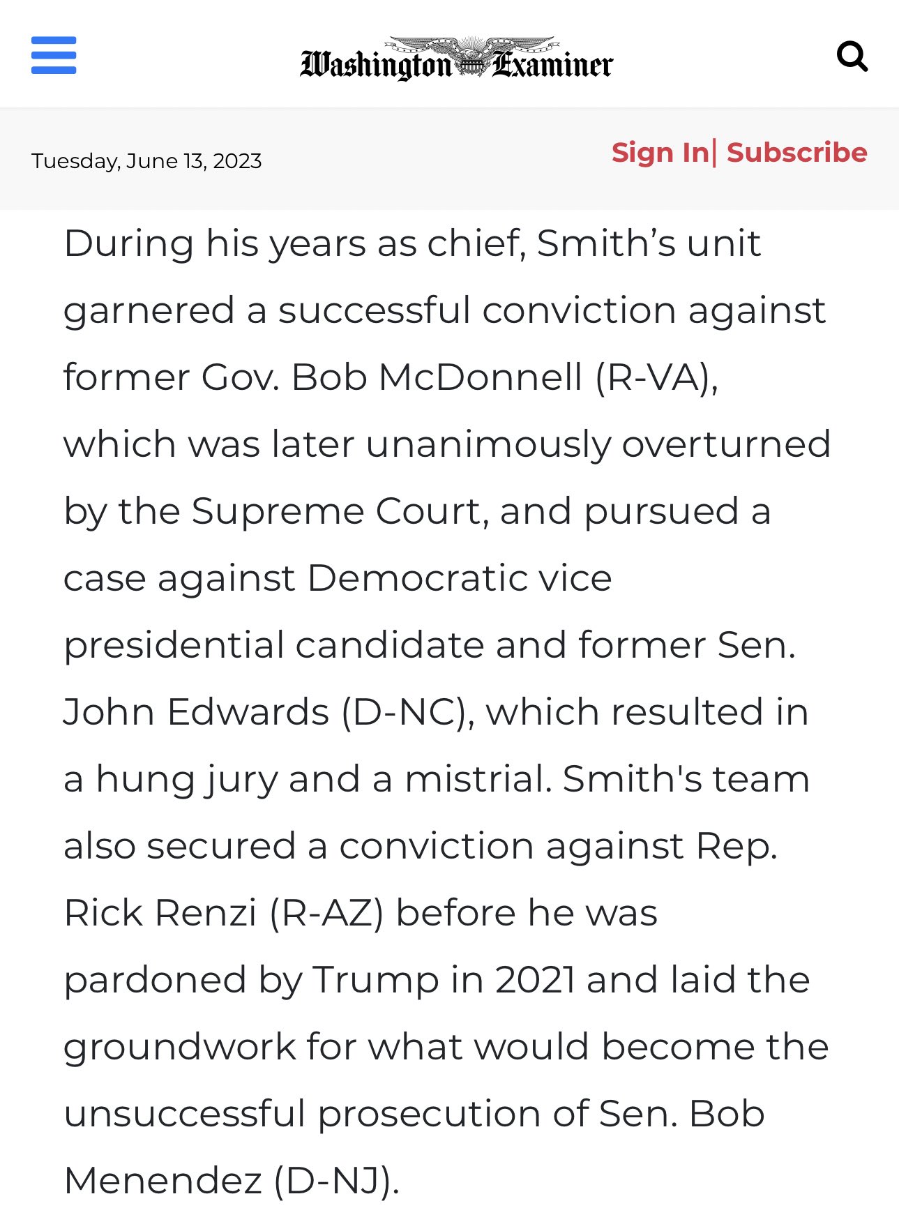 Former Va Gov. Bob McDonnell - conviction overturned by Supreme Court in 9-0 unanimous decision (both Scalia and Ginsburg agreed Jack was wrong - wow)