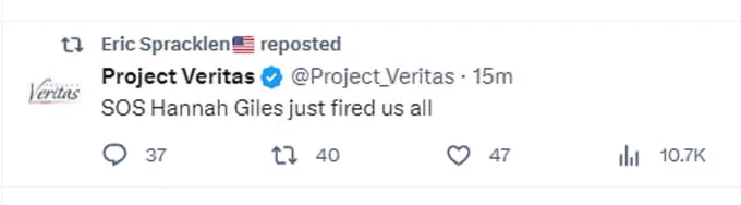 I'm told almost all of Project Veritas was just laid off and this is legit
