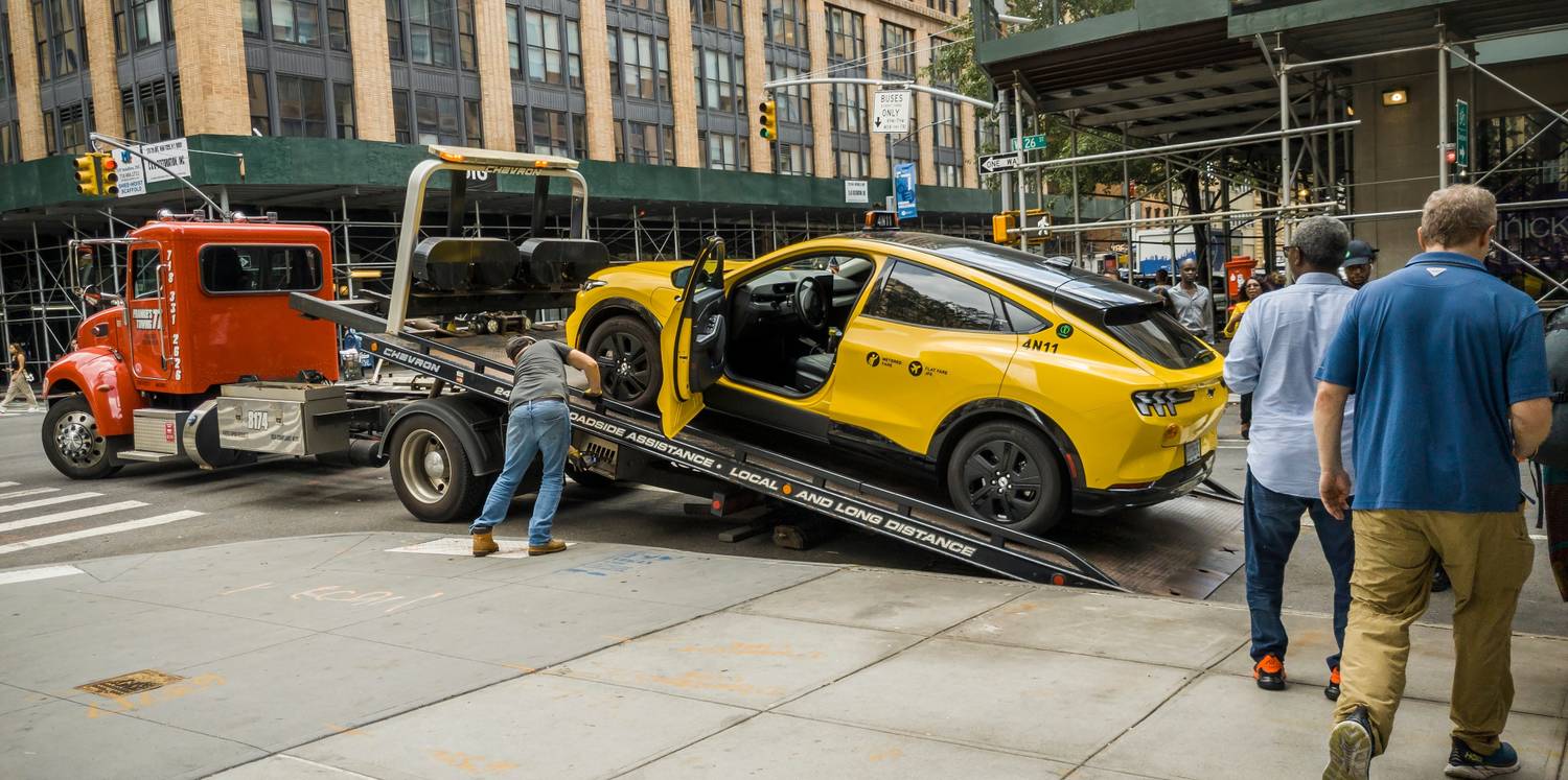 I think you are incorrect, the cars are low slung, much heavier than a regular car, and the battery may be destroyed by dragging the underside of the auto onto a truck. My first thought was a forklift. Grab it from the side, and pick it up and set it down.