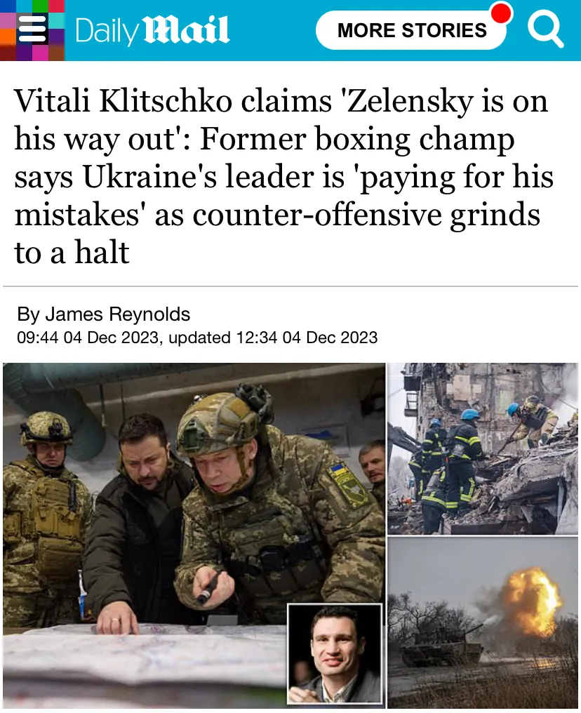 The funding from the West is drying up, winter is here, and Ukraine are running out of options. The counteroffensive failed, they have no wins to show NATO that indicate victory can be had, and the public around the world no longer care about Ukraine. Zelensky’s support is non-existent and “is on his way out” according to Kyiv Mayor, Vitali Klitschko.