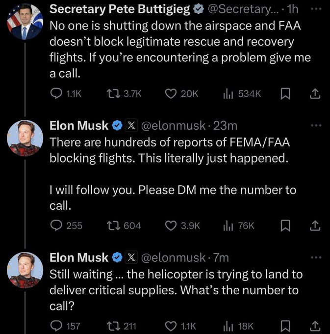 Not only are @elonmusk ’s generous efforts to assist the people in North Carolina being denied, but truckers who drove all the way from Florida to help were ordered to TURN AROUND.