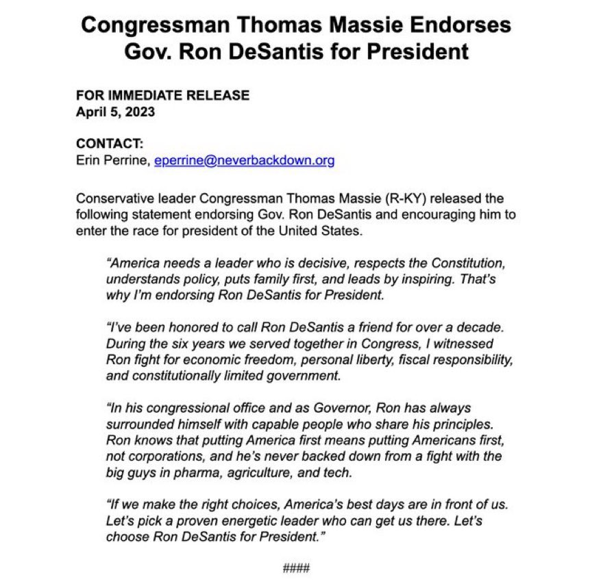 Massie is free to pipe up and sing against a guy who’s been shot at for trying to Make America Great Again. He’ll lose that battle of words.
