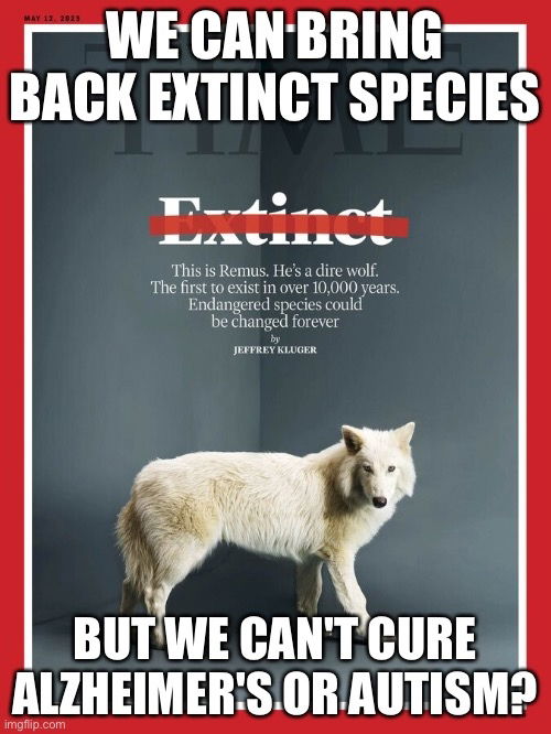 There is a reason the breed went extinct, and it had nothing to do with our carbon footprint. BTW, didn’t they find a dire wolf carcass at Skinwalker Ranch? Or was that all BS? It happened shortly before History channel blocked the program from any free viewing, so I couldn’t follow it.