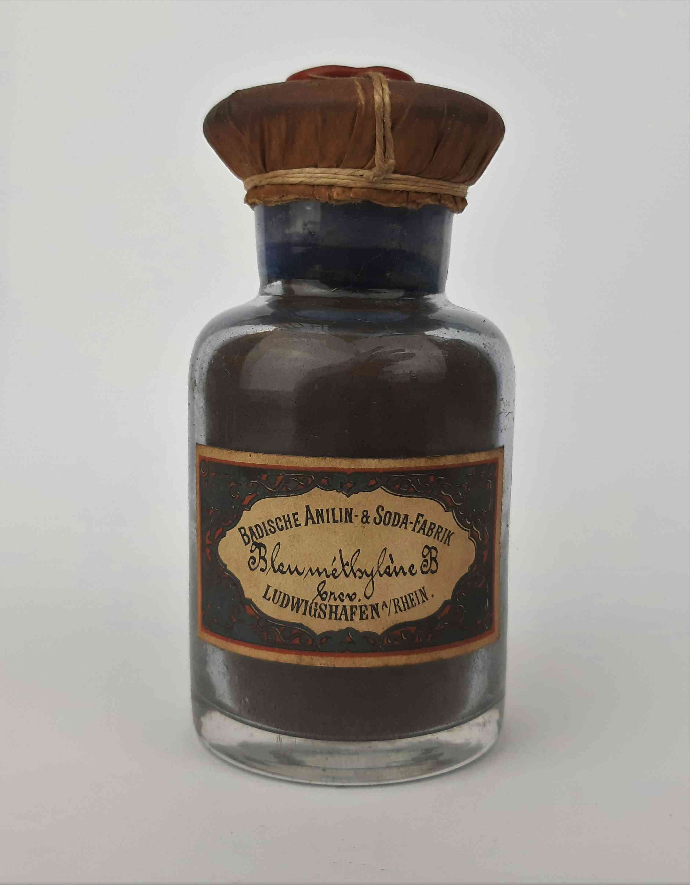 Methylene blue was first synthesized in the 19th century by scientists at the German chemical company BASF. Museo di Chimica dell’Università di Genova via Wikimedia Commons, CC BY-SA