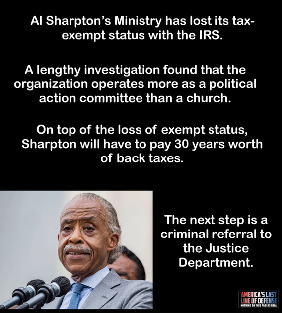 That last picture needs checking, I did a search about Al Sharpton Ministry losing its tax exempt status: