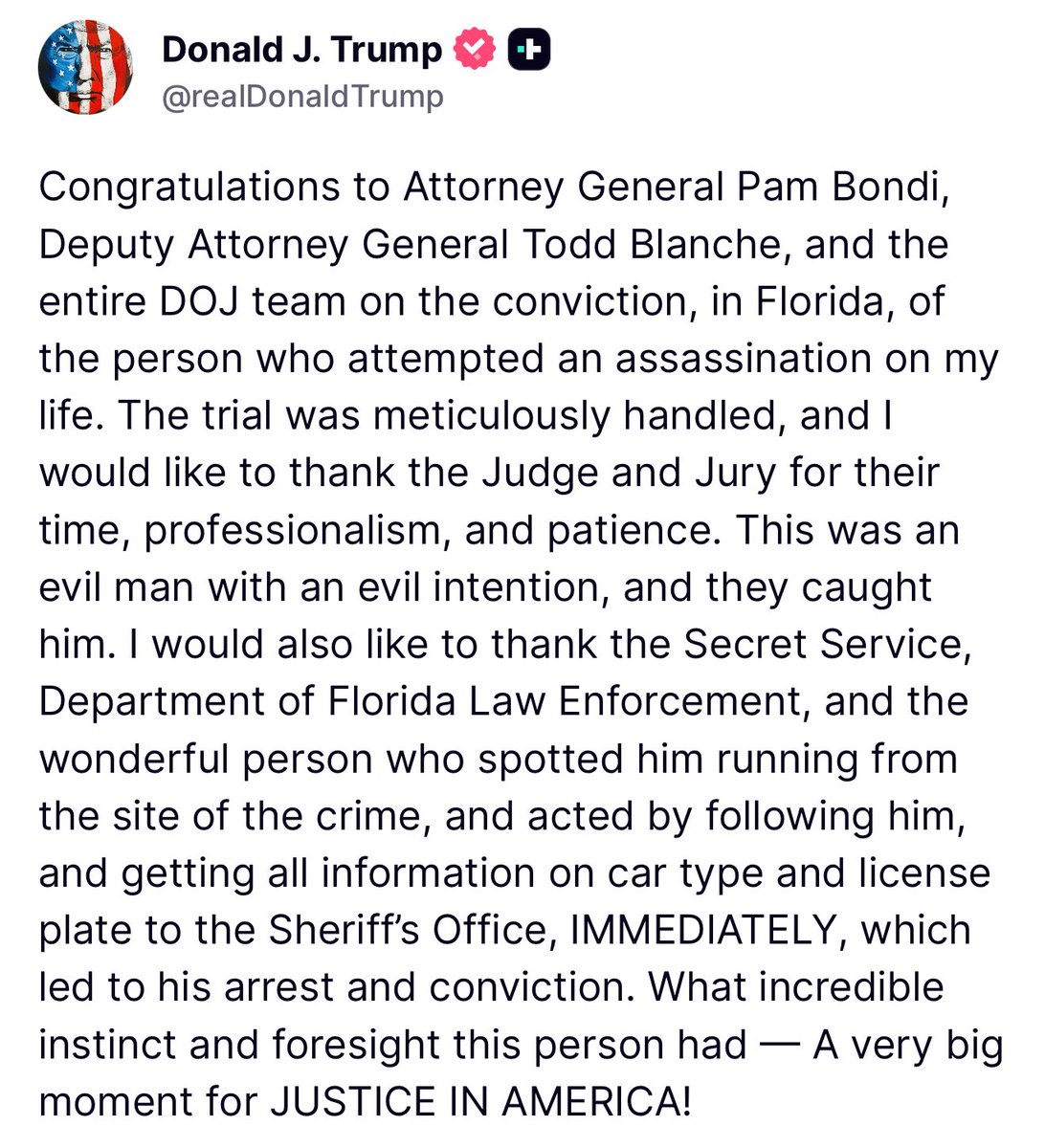 Source: https://truthsocial.com/@realDonaldTrump/115255130298104593
