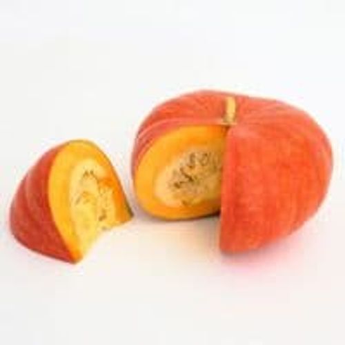 "French Heirloom. This unique 1800’s French pumpkin, Cinderella to us here in America, is popular with chefs for soup bases because its mild flavor doesn’t overpower other ingredients. Fruits are flattened and concave on top, about 15” across and 6” high. Skin color is a brilliant reddish-orange, more dramatic than the yellow-orange pumpkins you are used to. The Rouge Vif D'Etampes Pumpkin produces a flavor that is great in pies or any winter squash recipe. Plants are vigorous with 15’ vines." (Description from Pinetree Seeds)