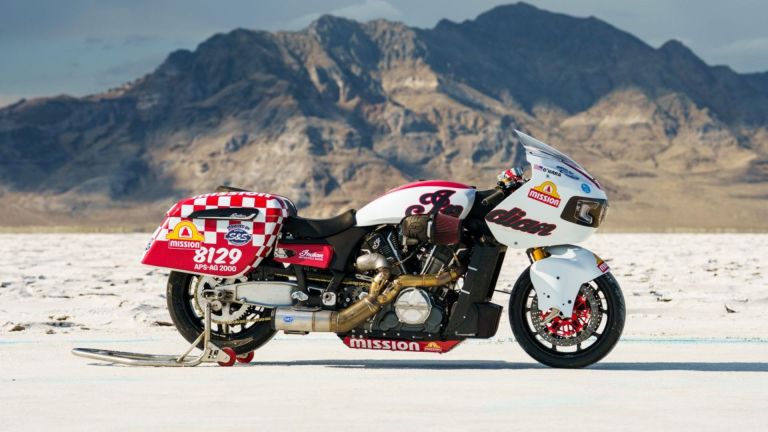 A 196 MPH race bagger at Bonneville. (Image credit: Indian Motorcycle)
