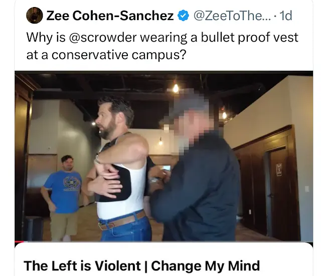Kirk was a class act=- Crowder, not so much BUT still he is bringing dialogue to the unhinged left- something the left refuse to do with the right