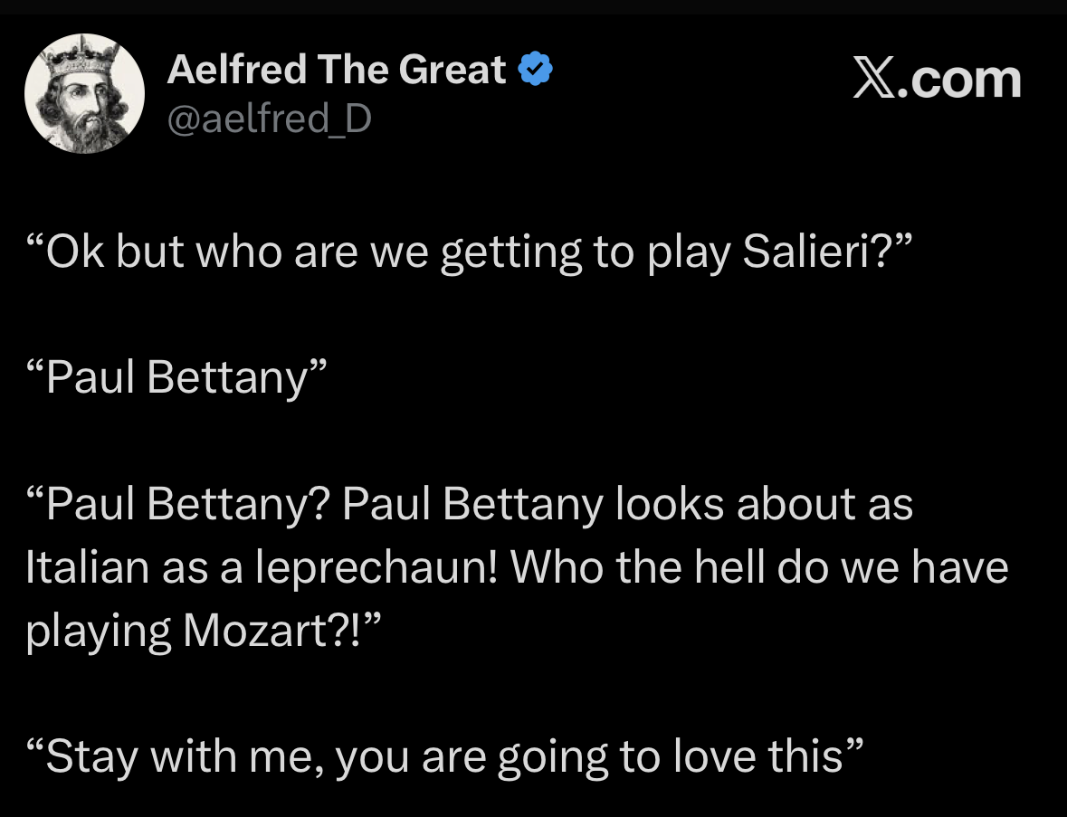 Meanwhile, F. Murray Abraham's Salieri is being replicated by that robot guy in the Avengers movies.