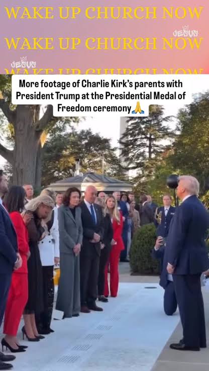That was last month and below was yesterday at the Medal of Freedom ceremony. Usha is in red, and if you watch the live footage: Erika at one point clasps Usha’s hand while weeping. (Charlie’s parents can also be seen mourning.)