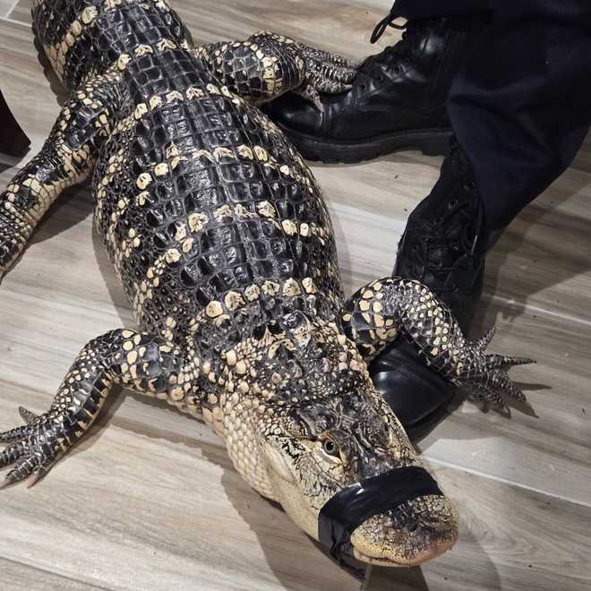 Authorities said the alligator was in good health, friendly and docile, indicating that it had most likely been someone's pet. The alligator was taken to Plumpton Park Zoo in Rising Sun, the sheriff's office said.