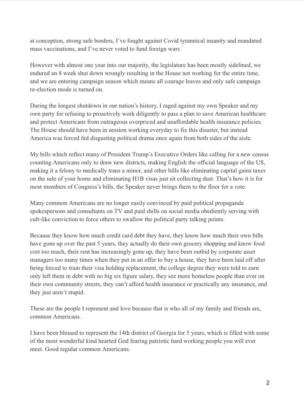 My official statement. pic.twitter.com/x48zEugmPV— Marjorie Taylor Greene 🇺🇸 (@mtgreenee) November 22, 2025