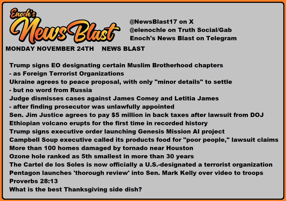 MONDAY NOVEMBER 24TH NEWS BLAST