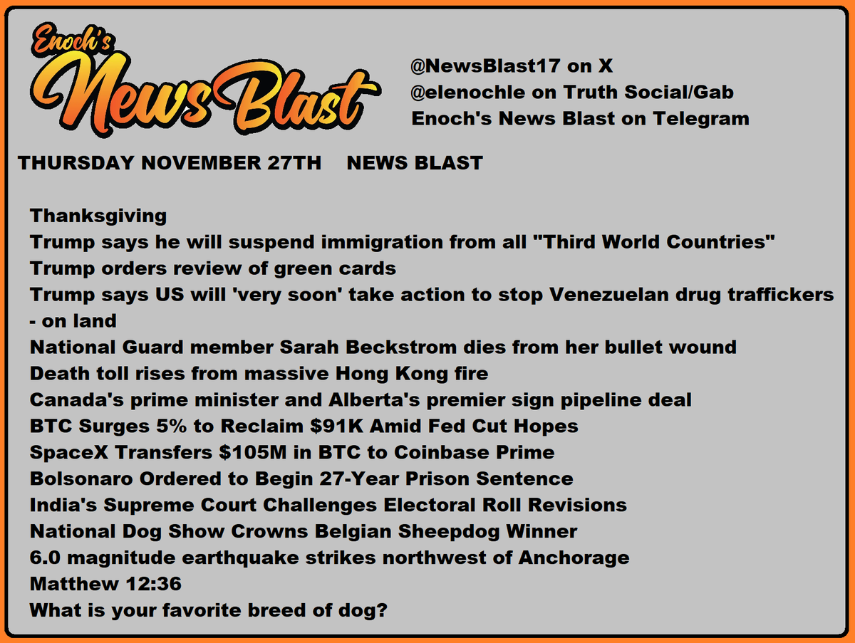 THURSDAY NOVEMBER 27TH NEWS BLAST