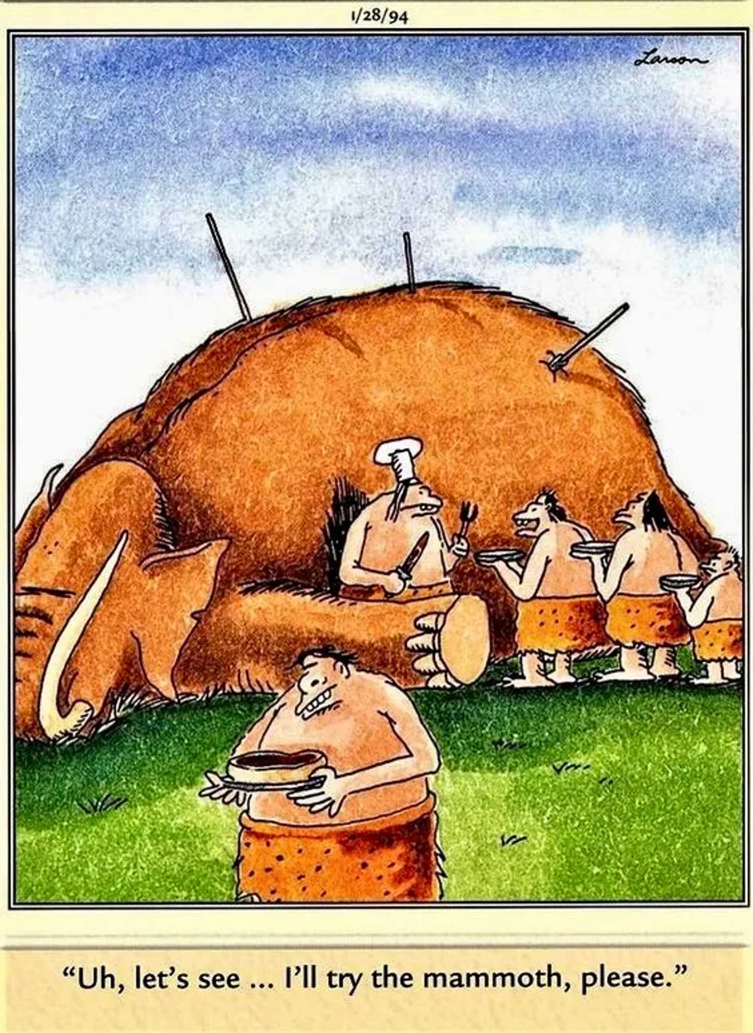Wonder how it would be raising up my own Mammoth? Who could I get to butcher it? Would I need Cavemen to do the job? How many freezers would it fill? ;)