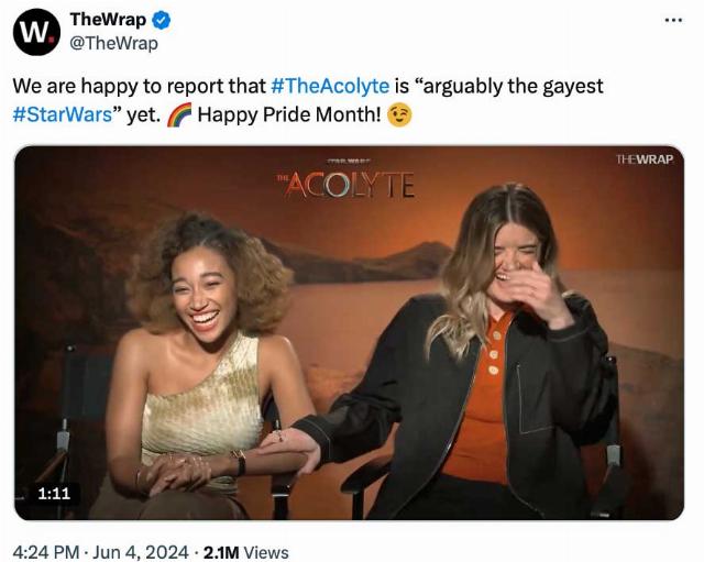 Doubling down on stupid, Disney produced The Acolyte in 2024, and its creator quickly declared it the “gayest Star Wars yet,” which was only a warmup for the revelation that lesbian space witches created the Jedi.