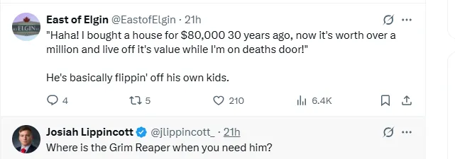 I’ve heard more than a few Boomers say they worked hard for their life and life achievements, but I’ve never heard any saying “Ha Ha! F You! In your face!” like these so-called posters are portrayed saying here.