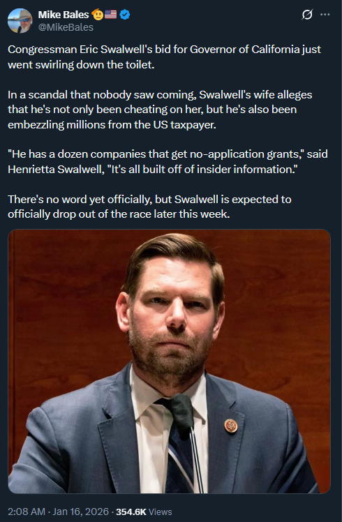 That would be great if it were true, but Swalwell’s wife’s name isn’t Henrietta and nobody else has this story, so it’s not so likely to be true.