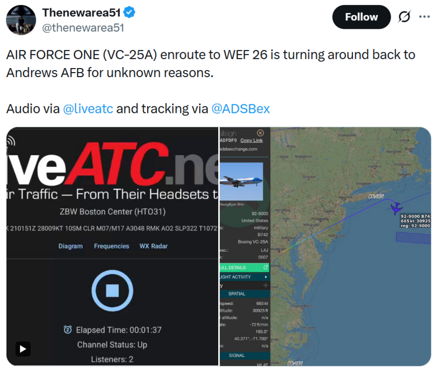 https://www.thegatewaypundit.com/2026/01/air-force-one-makes-sudden-u-turn-returns/