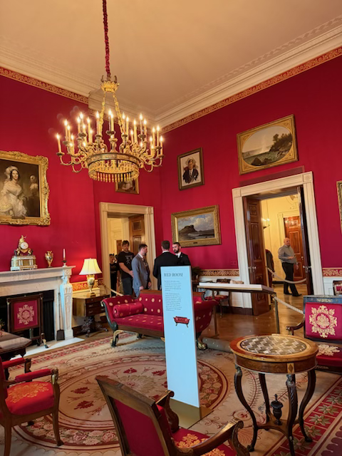 Coincidentally, my daughter who is in DC on a business trip, sent me this picture of the Red Room from her tour of the White House first thing this morning.