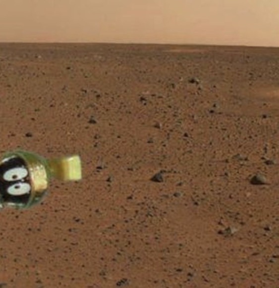 Claude:This is a classic example of a viral image that circulated online claiming to show a UFO in a Mars rover photo. The small dark object circled near the hilltop looks intriguing, but there are much more mundane explanations:
