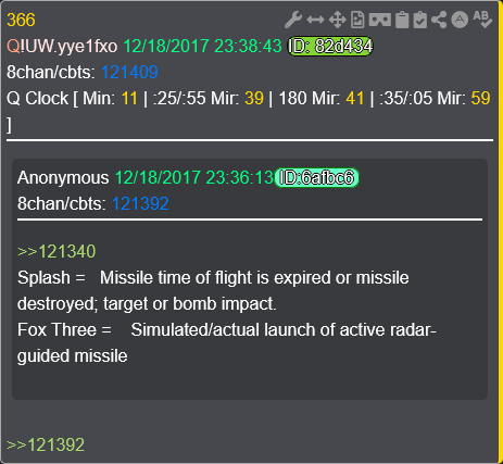 Splash = Missile time of flight is expired or missile destroyed; target or bomb impact.