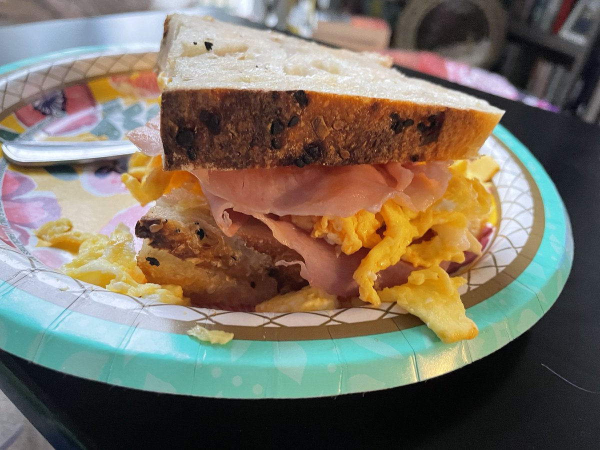 Egg Sandwich Breakfast Happy Saturday Coffee Apple Tree Bloom Early Grandson Coffee