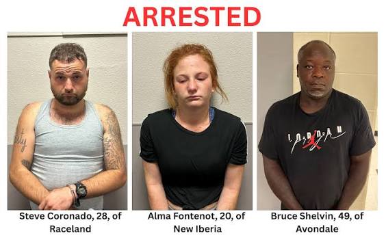 Investigators with the Ascension Parish Sheriff’s Office arrested three suspects, they announced in a September 11 Facebook post: 28-year-old Steve Coronado, 20-year-old Alma Fontenot and 49-year-old Bruce Shelvin. The suspects have been charged with simple burglary and felony theft over $25,000.