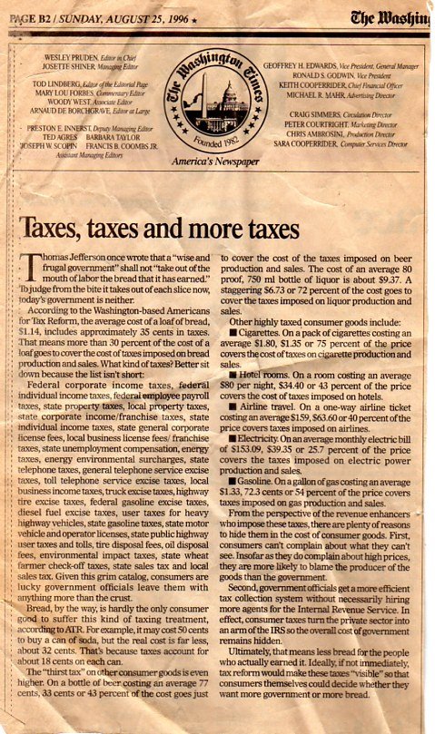They take 40-50% of peoples income and their families have to do without. Give you an example, when you buy a loaf of bread at the store, its been taxed over 30%,cars,30%,phone bill 30%, cable bill tax 30%,gas and electric.