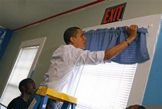 If ever there was a person all wee-wee'd up, it's BO (hanging a valance! He couldn't even hang a full drape!)