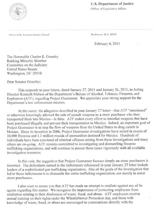 What an annoying article. Instead of wasting my time quoting from Braveheart, why don't you tell us: 1. Eric Holder's letter. 2. Grassley's much talked about but actually unmentioned reply. 3. The 'rosetta stone' documents.