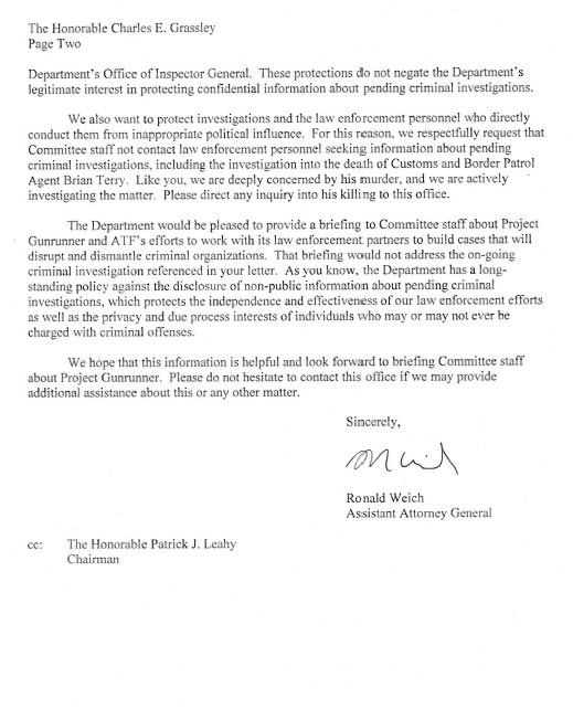 That was then. What a difference a couple of days and a letter makes. When the anonymous source provided David Codrea with Senator Grassley's reply to Eric Holder containing the "Rosetta Stone" documents, the agents whose careers and liberty have been hanging out there, twisting in wind, suddenly found an ally whose determination seems to equal theirs.