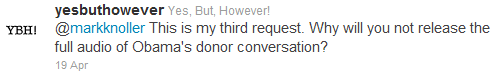 The site Yes, But, However sent several messages on Twitter to CBS White House correspondent Mark Knoller asking why the full audio was being kept a secret: