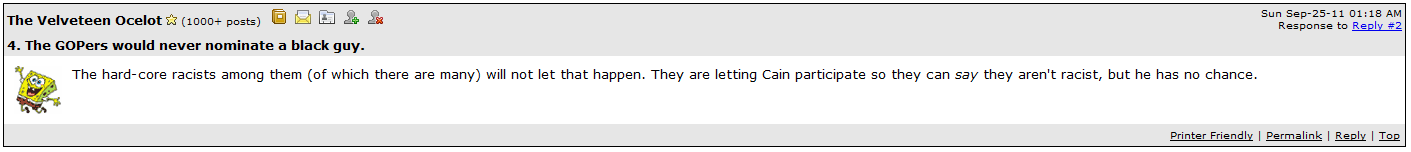 I thought they’d take a different tact, saying that Cain won 37% of the vote, therefore 63% of the Tea Party is racist - and ready to lynch the next black they see on the street.