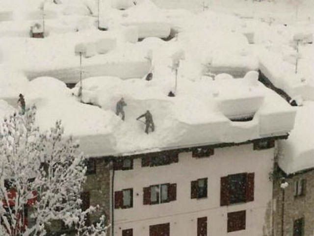 It looks like the roof deflected the wind and started catching snow drifts. Unbelievable that the roof didn't collapse. The snow pile looks bigger than the house.