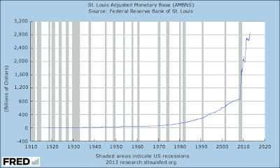 Compare it to the FRED monetary velocity chart to see why... The increase is only half the story. It is not, in and of itself, inflationary.