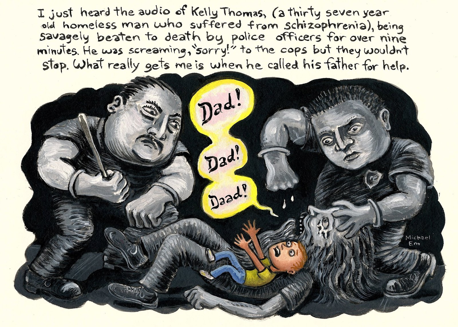 Last month, Ramos and his partner Jay Cicinelli were found not guilty of murder, even though the homeless, mentally ill man offered no resistance to their brutal assault. They pummeled some small guy to death just because he didn't bow down to their commands - and they were found not guilty?