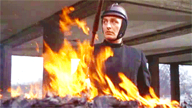 Montag grinned the fierce grin of all men singed and driven back by flame. He knew that when he returned to the firehouse, he might wink at himself, a minstrel man, burntcorked, in the mirror.