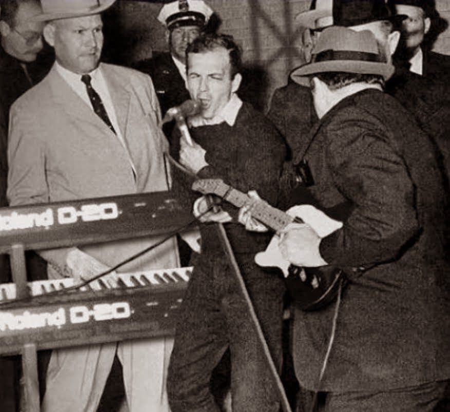 The rest is all duff. The Roland D-20 in the photo didn't exist until 1988. Yamaha didn't export an electronic organ into the US until 1968, and the models they produced before that were home/hobby rigs that would have been unsuitable for this ensemble. Leavelle played a Hammond, as did all red-blooded American boys in 1963.