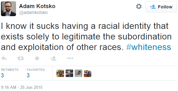 Every single white person alive today is "complicit" in slavery, according to Assistant Professor of Humanities Adam Kotsko, and should kill themselves.
