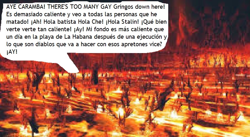 So ends the life of one of the last of the commie despots! Castro thought that there was no God and that there would be no consequence in the end of his life for his actions. Castro now realizes too late that Jesus is lord and that we all must answer for every word and deed we have committed. Even every thought. Castro thought he would get away with murder, he was wrong and the devil now has a new fireman. He'll no doubt be wailing and gnashing his teeth along with other socialists, Hitler, Mussolini, Stalin, Mao, Hugo and his predeceasor Batista! And don't forget about Che Guevera and those Cubans who served along side him. The good news its not too late to repent of your sins and serve Jesus Christ. Make him lord of your life and you wont ever have to burn in the lake of fire with Fidel Castro and his crew. You can spend eternity in heaven.