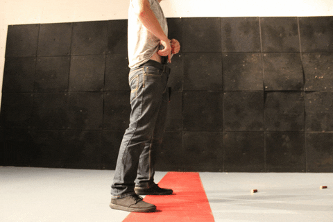 There is no escaping that you are violating rules one and two. All guns are loaded, and never let the muzzle cover something you aren’t willing to destroy. And doing so with a muzzle pointed right at your nuts, pelvis, and femoral artery.