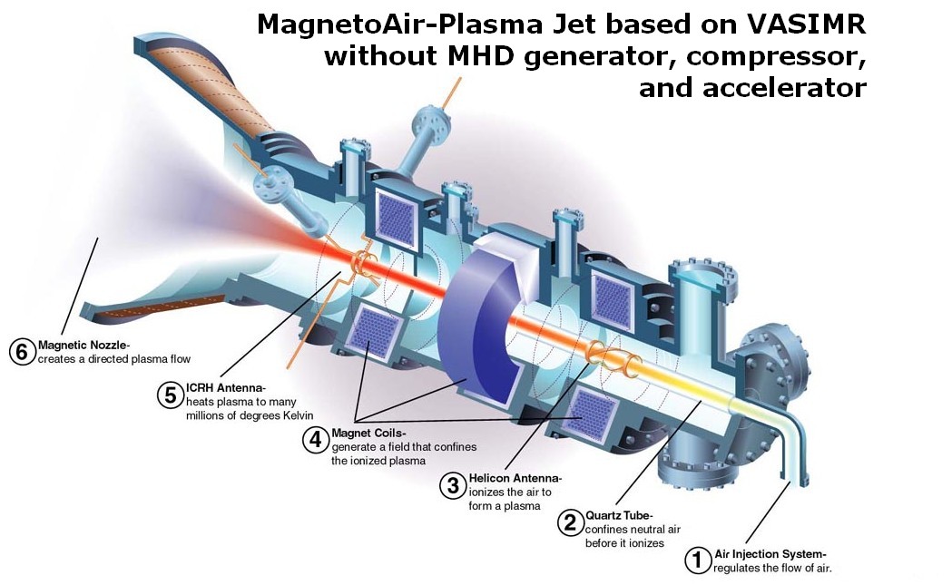 On the other hand, a plasma jet engine does away with the standard air and fuel mixture. Instead, it makes use of electricity to compress and excite gas into a plasma an extremely hot, dense ionised state comparable with the insides of a fusion reactor or a star then generate an electromagnetic field from it.