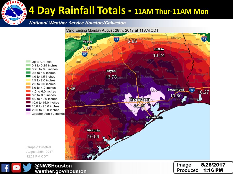 Maybe it is not the intensity NOAA is referring to, it’s the lack of movement with this storm. Instead on moving on it is meandering just offshore where it continues to pick up moisture which is then dropped as rainfall over the area. 50 inches of rain in four days over a major metro area in the US might be unprecedented.