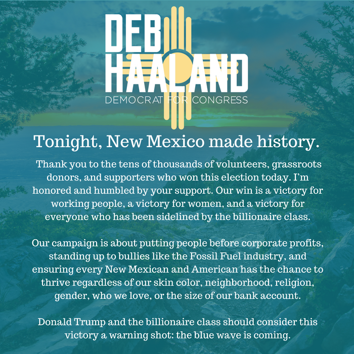 Deb Haaland is one step closer to becoming the first Native American congresswoman in U.S. history. She won her New Mexico primary Tuesday night in a district that leans blue and is currently held by a retiring Democrat.