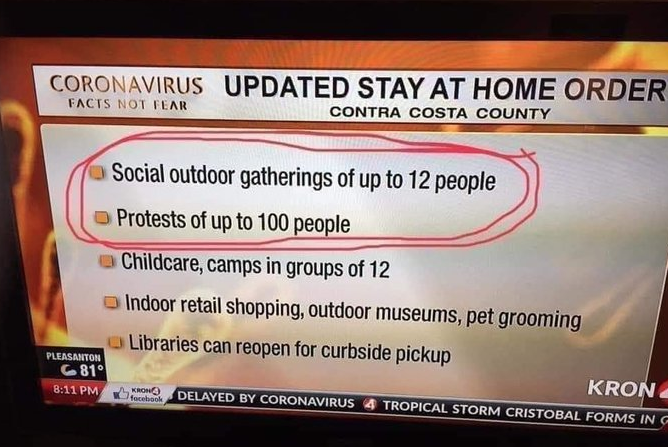 I was looking for the one featuring a church service with a couple of protest banners so they could qualify as an essential service, but I couldn't find that one.